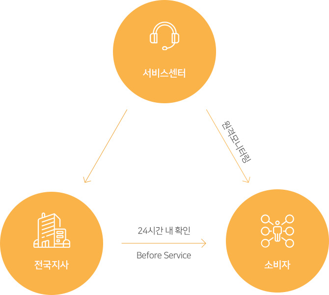 제품의 설치 운영 시 네트워크를 통한 서비스센터의 모니터링이 진행되어, 24시간 안전하게 사용하실 수 있습니다.