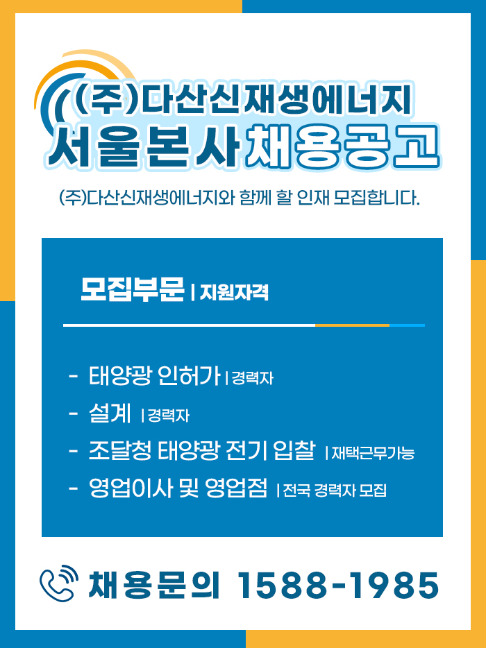 다산신재생에너지와 함께할 인재 모집합니다